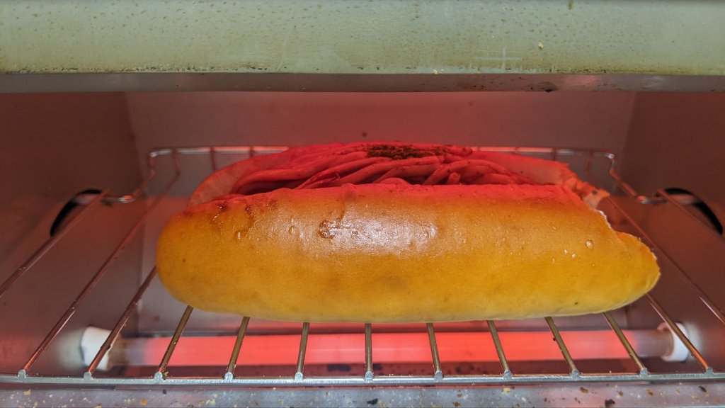 In an effort to rescue this review and salvage some positive points about this horrible hotdog, I place it in my toaster. After a couple of minutes I tried the heated up version of the hotdog. And, well…
